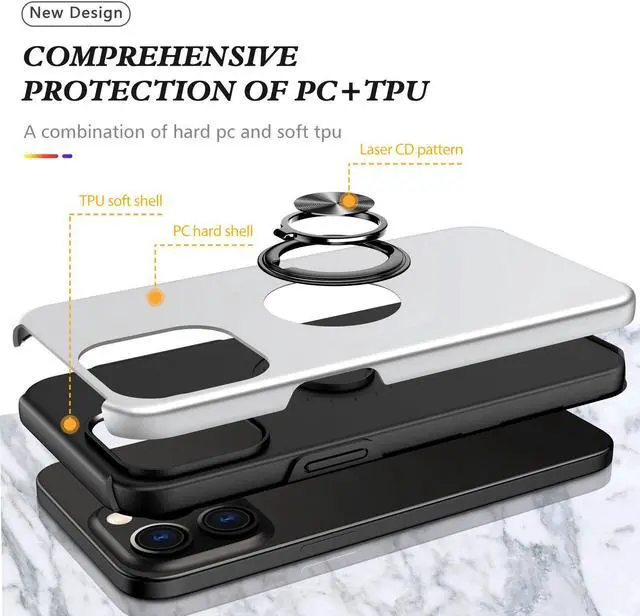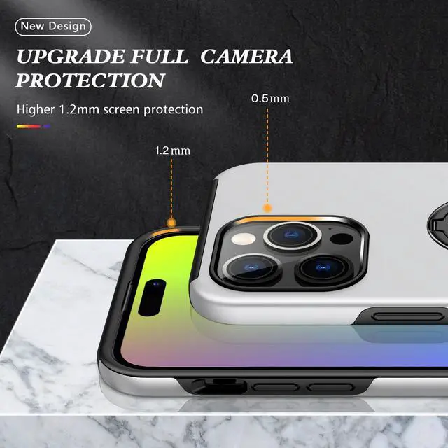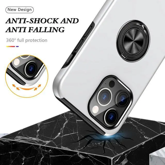 Features: Compatible with Apple iPhone 15 Pro. Made from reinforced bonded thermopolyurethane and high quality polycarbonate materials, which makes it flexible enough to absorb punishment but hard enough to resist potential damage. The back of the case has a built-in extremely practical handle, Ring, which can be put on the finger to hold the phone more securely in your hand. Pull the ring out and have a handy viewing stand to comfortably watch your favorite show. Ultra-slim, lightweight and minimal design. Equipped with two-piece design, you can easily pop the case on and off with ease while still feeling ultimately protected. Raised front bezel and camera opening prevent scratches to the screen and camera lens. Get maximum safety and easy access to all buttons and ports from raised bezel edges, shock-absorbing corners, and a non-slip bumper grip. Enjoy magnetic mount compatibility, as the ring holder also functions as a built-in metal plate. Antimicrobial case protection.
