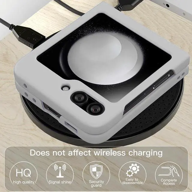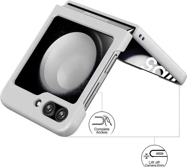 Features: Compatible with Samsung Galaxy Z Flip 5. The cover protects without being a bulky addition to your phone. It is designed with a slim form factor, keeping the sleek design of your phone intact. The cover material is durable even against scratches so it stays safe in your pocket or purse with ease. Protect your phone's corners and exterior to keep it safe from damage. Add protection while maintaining Galaxy Z Flip5 5G's shape and the pocketable compact size. The thin material wraps around your phone and while enhancing the grip so your hands stay comfortable. Raised beveled edge offers front screen protection. The simple and easy installation allows the cover to be attached in no time. simply clip onto the top half and bottom half of the phone individually and away you go. Features cut-outs for the ports and features including the charging connector and camera. Supports wireless charging with most Qi-certified devices.