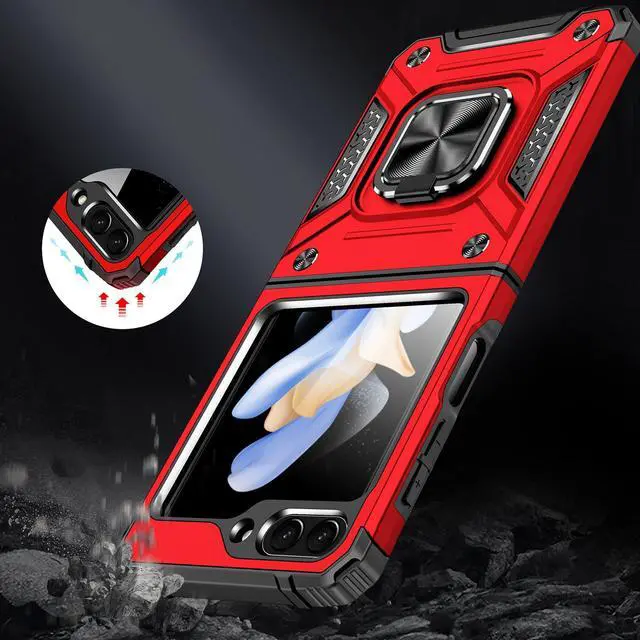 Features: Compatible with Samsung Galaxy Z Flip 5. Extensively drop tested, so you can feel reassured that your device is well protected. Made from reinforced bonded thermopolyurethane and high quality polycarbonate materials, which makes it flexible enough to absorb punishment but hard enough to resist potential damage. Finger loop for extra drop protection - in more ways than one. The loop can also perform as a handy viewing stand. Just pull the loop out to its full extent and rest your phone at an angle on a flat surface. The loop will prop the phone up at a perfect viewing angle for watching media. Four corners with beveled exterior and hollow interior offer strong resistance to impact and bumps. Reinforced TPU bumper edges provide excellent protection where it's most needed. The selected materials used have a non-slip coating that provides you with extra grip for your phone, which minimizes the chance of dropping your device. Slim fitting design adds no very little bulk and fits perfectly in your pocket. Raised bezels on the case protects your screen and camera from scratches and dirt. Intuitive button covers for a tactile experience.