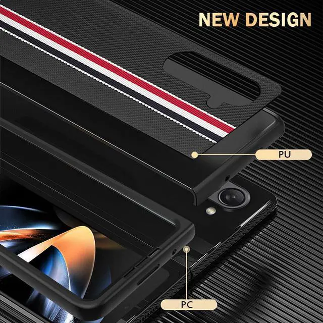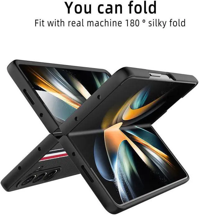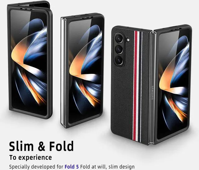 Features: Compatible with Samsung Galaxy Z Fold 5. This case is made with polycarbonate material with carbon fiber accent, created to be extremely thin to maintain your phone's form factor. It simply snaps on to your phone without adding bulk. This lightweight, thin material is strong, making it durable. Once it's installed, you can rest assured your phone is ready to go, even if the going gets rough. The cover is shaped to wrap around the edges of the phone when installed. So not only are the rear and sides secured, your screen has some protection as well. Slim fitting design adds no extra bulk and fits perfectly in your pocket. With a raised beveled edge, the cover keeps the screen protected and looking as good as new. The simple and easy installation allows the cover to be attached in no time. simply clip onto the top half and bottom half of the phone individually and away you go. Features cut-outs for the ports and features including the charging connector and camera.