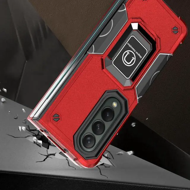 to withstands 4X MIL-STD (810G- 516.6 ), meaning the cases have been dropped at 2 meters with zero damage done to the device. Featuring a robust multi-layered design, the case provides extreme protection for your device. This hard-wearing tough case safe-guards your phone against whatever life can throw at, keeping it secure at all times even in the most extreme of conditions. Grooved Sides - Like a firm handshake with your phone. A soft rubberized TPU inner core tightly grips to your phone while absorbs shock and cushions the phone from drops and impact. Patented hybrid case with ridge polycarbonate hard shell for armor-like protection. Reinforced air cushion corners provide excellent protection where it's most needed. The back of the case has a built-in extremely practical handle, Ring, which can be put on the finger to hold the phone more securely in your hand. It also allows you to attach the phone to a magnetic car holder. Pull the ring out and have a handy viewing stand to comfortably watch your favorite show. Raised front bezel and camera opening prevent scratches to the screen and camera lens.