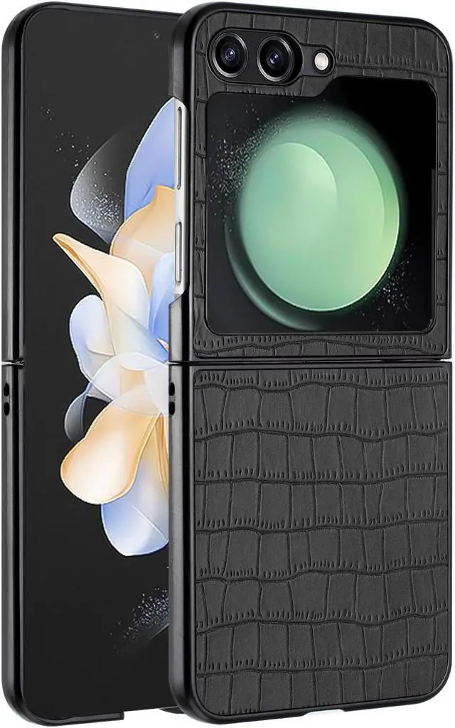Features: Compatible with Samsung Galaxy Z Flip 5. The cover protects without being a bulky addition to your phone. It is designed with a slim form factor, keeping the sleek design of your phone intact. The embossed alligator skin pattern synthetic leather material is durable even against scratches so it stays safe in your pocket or purse with ease. Protect your phone's corners and exterior to keep it safe from damage. Add protection while maintaining Galaxy Z Flip5 5G's shape and the pocketable compact size. The thin material wraps around your phone and while enhancing the grip so your hands stay comfortable. Raised beveled edge offers front screen protection. The simple and easy installation allows the cover to be attached in no time. simply clip onto the top half and bottom half of the phone individually and away you go. Features cut-outs for the ports and features including the charging connector and camera.