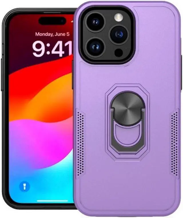 For unbeatable protection, the dual layer TUFF Hybrid Case provides supreme defense against drops and abrasions. A soft rubberized TPU interior complete encases the Apple iPhone 15 Pro Max for shock adsorption on all sides while hardened polycarbonate shell attach to the back for a sleek look. This tough case provides extreme protection and a ring holder to keep your phone in your hand, whether from accidental drops or attempted theft. Also doubles as a stand.