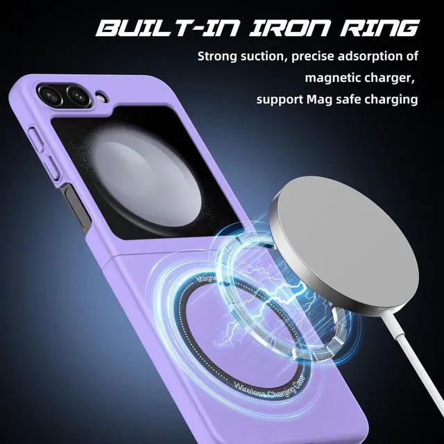 Features: Compatible with Samsung Galaxy Z Flip 5. The cover protects without being a bulky addition to your phone. It is designed with a slim form factor, keeping the sleek design of your phone intact. The cover material is durable even against scratches so it stays safe in your pocket or purse with ease. Protect your phone's corners and exterior to keep it safe from damage. Add protection while maintaining Galaxy Z Flip5 5G's shape and the pocketable compact size. The thin material wraps around your phone and while enhancing the grip so your hands stay comfortable. Raised beveled edge offers front screen protection. The simple and easy installation allows the cover to be attached in no time. simply clip onto the top half and bottom half of the phone individually and away you go. Built-In MagSafe magnetic ring, and your phone is ready for the snap-on/snap-off satisfaction of MagSafe magnetic wireless charging, magnetic ring mounting, and a whole world of swappable magnetic accessories. Features cut-outs for the ports and features including the charging connector and camera.