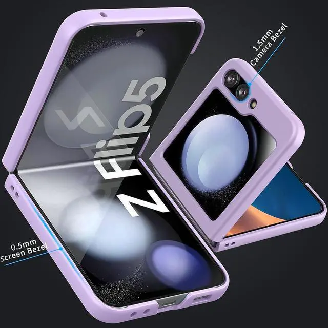 Features: Compatible with Samsung Galaxy Z Flip 5. The cover protects without being a bulky addition to your phone. It is designed with a slim form factor, keeping the sleek design of your phone intact. The cover material is durable even against scratches so it stays safe in your pocket or purse with ease. Protect your phone's corners and exterior to keep it safe from damage. Add protection while maintaining Galaxy Z Flip5 5G's shape and the pocketable compact size. The thin material wraps around your phone and while enhancing the grip so your hands stay comfortable. Raised beveled edge offers front screen protection. The simple and easy installation allows the cover to be attached in no time. simply clip onto the top half and bottom half of the phone individually and away you go. Features cut-outs for the ports and features including the charging connector and camera. Supports wireless charging with most Qi-certified devices.