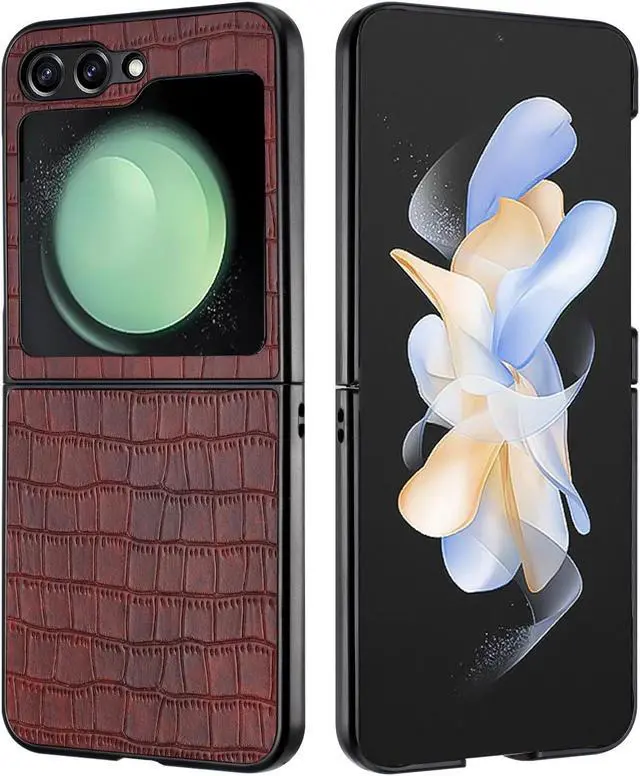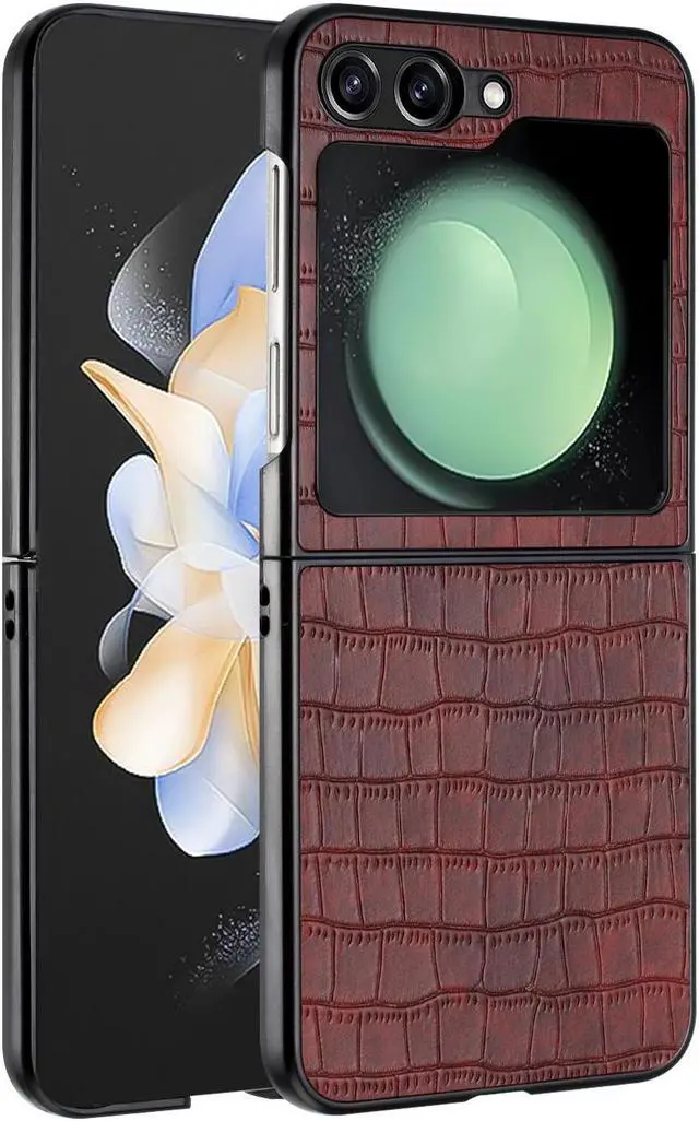 Features: Compatible with Samsung Galaxy Z Flip 5. The cover protects without being a bulky addition to your phone. It is designed with a slim form factor, keeping the sleek design of your phone intact. The embossed alligator skin pattern synthetic leather material is durable even against scratches so it stays safe in your pocket or purse with ease. Protect your phone's corners and exterior to keep it safe from damage. Add protection while maintaining Galaxy Z Flip5 5G's shape and the pocketable compact size. The thin material wraps around your phone and while enhancing the grip so your hands stay comfortable. Raised beveled edge offers front screen protection. The simple and easy installation allows the cover to be attached in no time. simply clip onto the top half and bottom half of the phone individually and away you go. Features cut-outs for the ports and features including the charging connector and camera.
