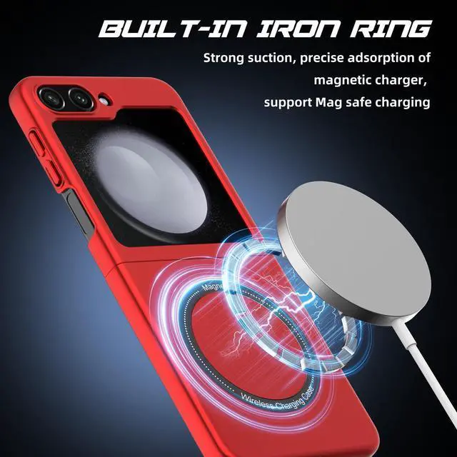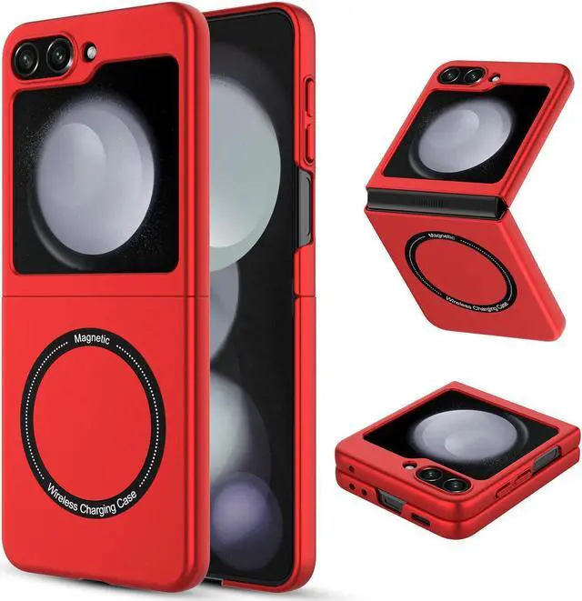 Features: Compatible with Samsung Galaxy Z Flip 5. The cover protects without being a bulky addition to your phone. It is designed with a slim form factor, keeping the sleek design of your phone intact. The cover material is durable even against scratches so it stays safe in your pocket or purse with ease. Protect your phone's corners and exterior to keep it safe from damage. Add protection while maintaining Galaxy Z Flip5 5G's shape and the pocketable compact size. The thin material wraps around your phone and while enhancing the grip so your hands stay comfortable. Raised beveled edge offers front screen protection. The simple and easy installation allows the cover to be attached in no time. simply clip onto the top half and bottom half of the phone individually and away you go. Built-In MagSafe magnetic ring, and your phone is ready for the snap-on/snap-off satisfaction of MagSafe magnetic wireless charging, magnetic ring mounting, and a whole world of swappable magnetic accessories. Features cut-outs for the ports and features including the charging connector and camera.