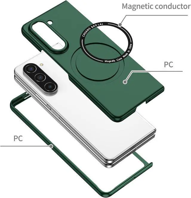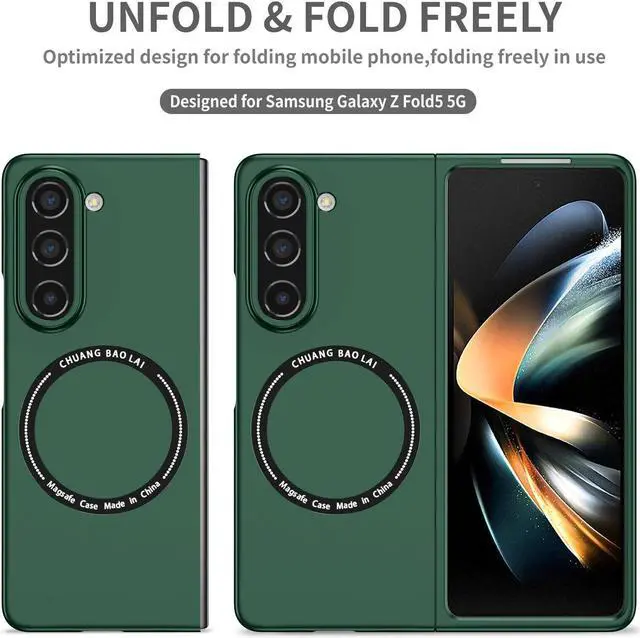 Features: Compatible with Samsung Galaxy Z Fold 5. This case is made with polycarbonate material, created to be extremely thin to maintain your phone's form factor. It simply snaps on to your phone without adding bulk. This lightweight, thin material is strong, making it durable. Once it's installed, you can rest assured your phone is ready to go, even if the going gets rough. The cover is shaped to wrap around the edges of the phone when installed. So not only are the rear and sides secured, your screen has some protection as well. Slim fitting design adds no extra bulk and fits perfectly in your pocket. With a raised beveled edge, the cover keeps the screen protected and looking as good as new. The simple and easy installation allows the cover to be attached in no time. simply clip onto the top half and bottom half of the phone individually and away you go. Built-In MagSafe magnetic ring, and your phone is ready for the snap-on/snap-off satisfaction of MagSafe magnetic wireless charging, magnetic ring mounting, and a whole world of swappable magnetic accessories.