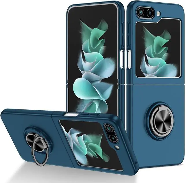 Features: Compatible with Samsung Galaxy Z Flip 5. The cover protects without being a bulky addition to your phone. It is designed with a slim form factor, keeping the sleek design of your phone intact. The cover material is durable even against scratches so it stays safe in your pocket or purse with ease. Protect your phone's corners and exterior to keep it safe from damage. Add protection while maintaining Galaxy Z Flip5's shape and the pocketable compact size. The thin material wraps around your phone and while enhancing the grip so your hands stay comfortable. The back of the case has a built-in extremely practical handle, Ring, which can be put on the finger to hold the phone more securely in your hand. Pull the ring out and have a handy viewing stand to comfortably watch your favorite show. Raised beveled edge offers front screen protection. The simple and easy installation allows the cover to be attached in no time. simply clip onto the top half and bottom half of the phone individually and away you go. Enjoy magnetic mount compatibility, as the ring holder also functions as a built-in metal plate.