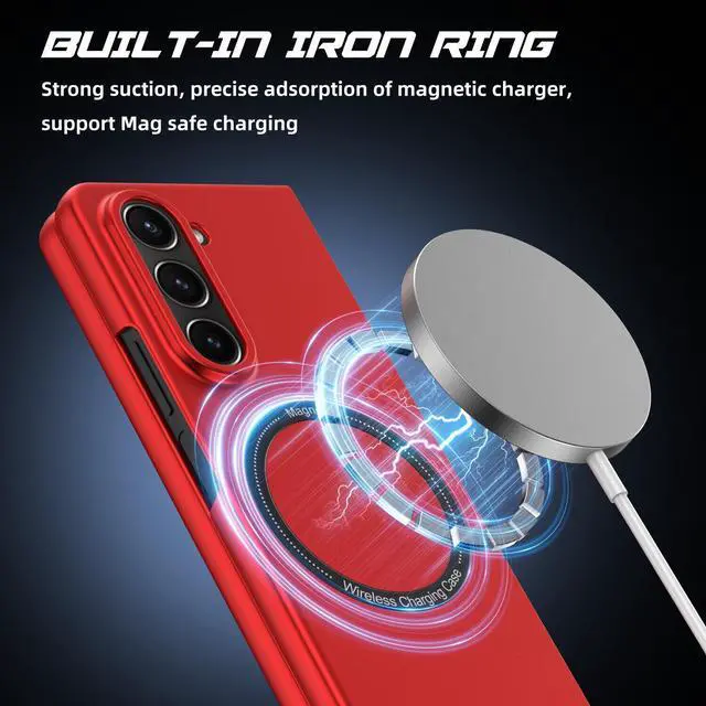 Features: Compatible with Samsung Galaxy Z Fold 5. This case is made with polycarbonate material, created to be extremely thin to maintain your phone's form factor. It simply snaps on to your phone without adding bulk. This lightweight, thin material is strong, making it durable. Once it's installed, you can rest assured your phone is ready to go, even if the going gets rough. The cover is shaped to wrap around the edges of the phone when installed. So not only are the rear and sides secured, your screen has some protection as well. Slim fitting design adds no extra bulk and fits perfectly in your pocket. With a raised beveled edge, the cover keeps the screen protected and looking as good as new. The simple and easy installation allows the cover to be attached in no time. simply clip onto the top half and bottom half of the phone individually and away you go. Built-In MagSafe magnetic ring, and your phone is ready for the snap-on/snap-off satisfaction of MagSafe magnetic wireless charging, magnetic ring mounting, and a whole world of swappable magnetic accessories.