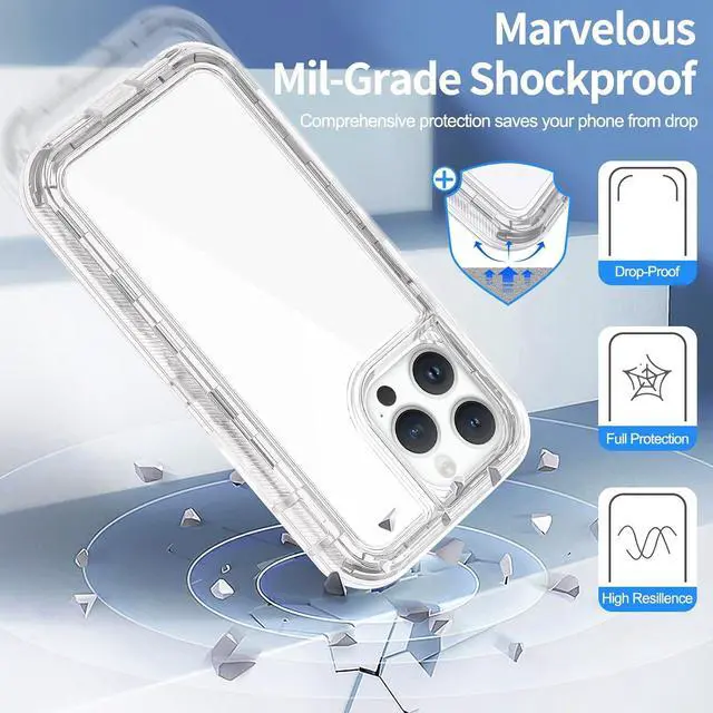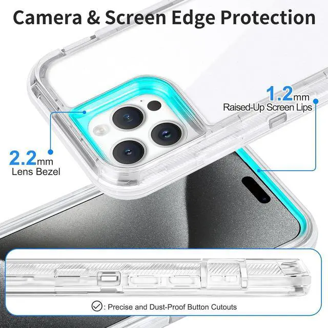 Equip your Apple iPhone 15 Pro Max with the most extreme and durable protection around! The Military Grade Transparent Hybrid Case provides rugged drop and scratch protection while keeping the phone's form factor.