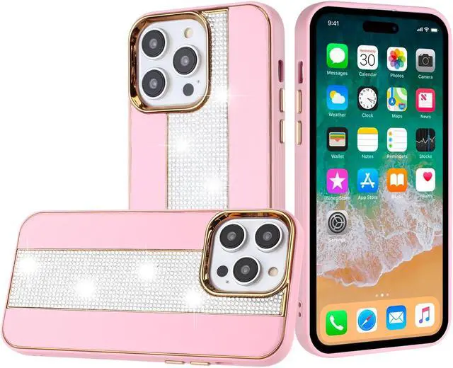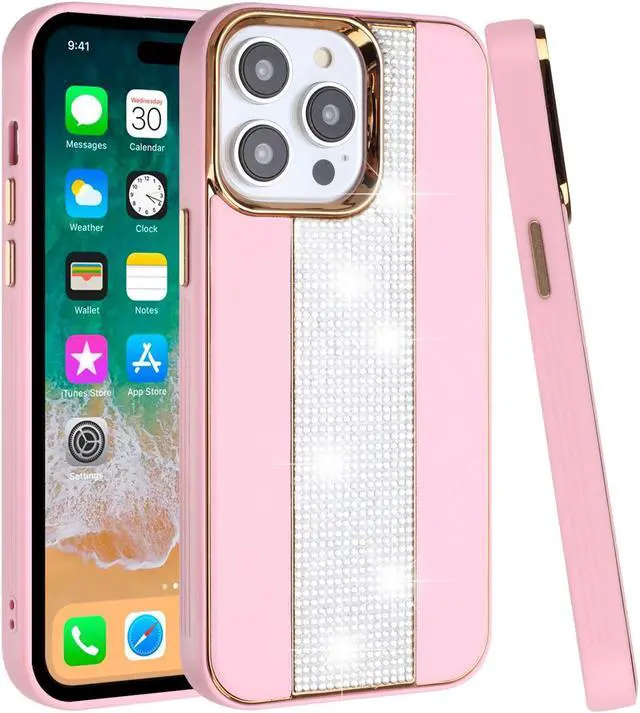 Features: Compatible with Apple iPhone 15. Premium bling swarovski-grade crystal rhinestones embedded onto the case. The stylish crystal rhinestone and leather finish not only feels great in hand, but it also provides excellent grip - reducing the risk of accidental drops and bumps. Premium dual-material construction with polycarbonate backing and TPU perimeter creates a sleek profile without sacrificing protection. Front bumpers raised slightly above your screen act to protect your screen when placed face down or dropped. Raised camera cut-out with integrated camera lens bumper protector protects the lens from scratches when placing your phone on flat surface. Soft microfiber lining on the inside helps protect your phone. Precisely cutouts to preserve full use of volume buttons, charger, camera, microphone, and all other ports.