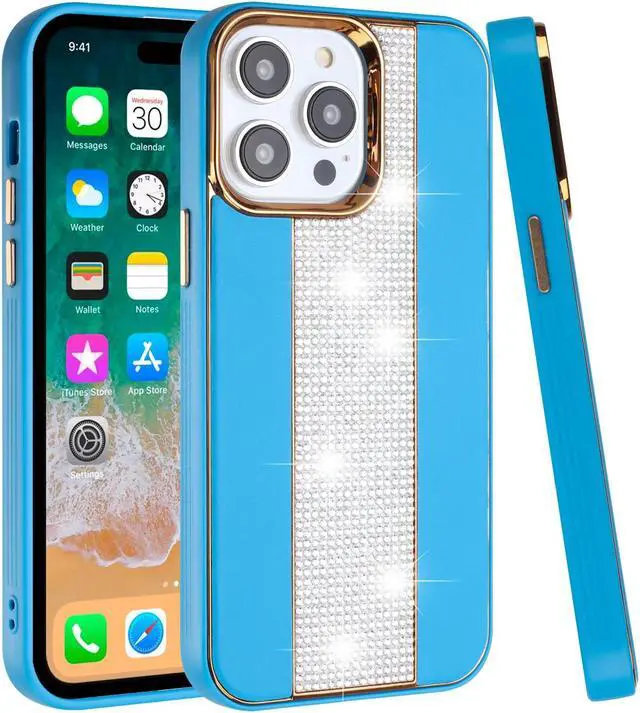 Features: Compatible with Apple iPhone 14 Pro Max. Premium bling swarovski-grade crystal rhinestones embedded onto the case. The stylish crystal rhinestone and leather finish not only feels great in hand, but it also provides excellent grip - reducing the risk of accidental drops and bumps. Premium dual-material construction with polycarbonate backing and TPU perimeter creates a sleek profile without sacrificing protection. Front bumpers raised slightly above your screen act to protect your screen when placed face down or dropped. Raised camera cut-out with integrated camera lens bumper protector protects the lens from scratches when placing your phone on flat surface. Soft microfiber lining on the inside helps protect your phone. Precisely cutouts to preserve full use of volume buttons, charger, camera, microphone, and all other ports.