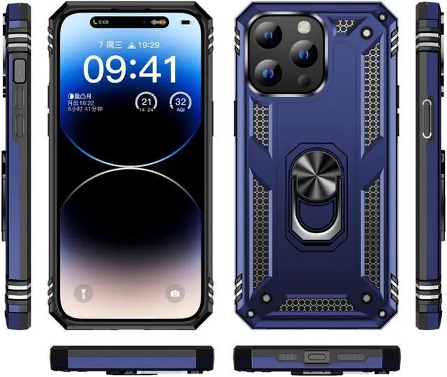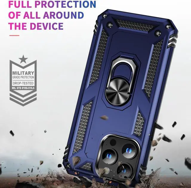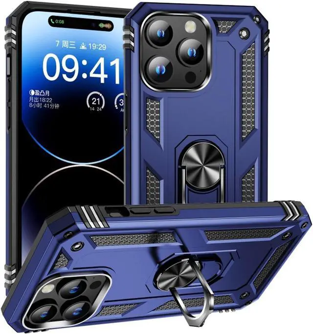 Features: Compatible with Apple iPhone 15 Pro. Military Standard Shock Test MIL-STD 810G- 516.6 Protection. The case endured 26 drops (at 48in) on all 6 faces, 12 edges and 8 corners of the device and sustained zero damage to the appearance and internal hardware of the phone itself. Made from a special strong and lightweight durable material, providing you with long lasting protection for your smartphone without making it cumbersome. Ring holder for extra drop protection - in more ways than one. The built-it ring features a 180 and 360 degree rotating design to ensure a comfortable grip at any angle. Flip the ring out and it doubles as a kickstand to take your binge-watching experience to the next level. Unique mix material hybrid design.