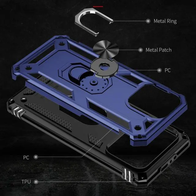 Layer 2: One-piece custom molded polycarbonate shell. Featuring a robust multi-layered design, the case provides extreme protection for your smartphone. This hard-wearing tough case safe-guards your phone against whatever life can throw your way, keeping your device secure at all times even in the most extreme of conditions. Raised front bezel and camera opening prevent scratches to the screen and camera lens. With fluid press buttons included in the design of this case, you can be sure to have a case that will protect your new device perfectly, without interrupting it's every day use. Enjoy magnetic mount compatibility, as the ring holder also functions as a built-in metal plate. Precise cutouts provide full access to your phone’ s important features, ports and button.