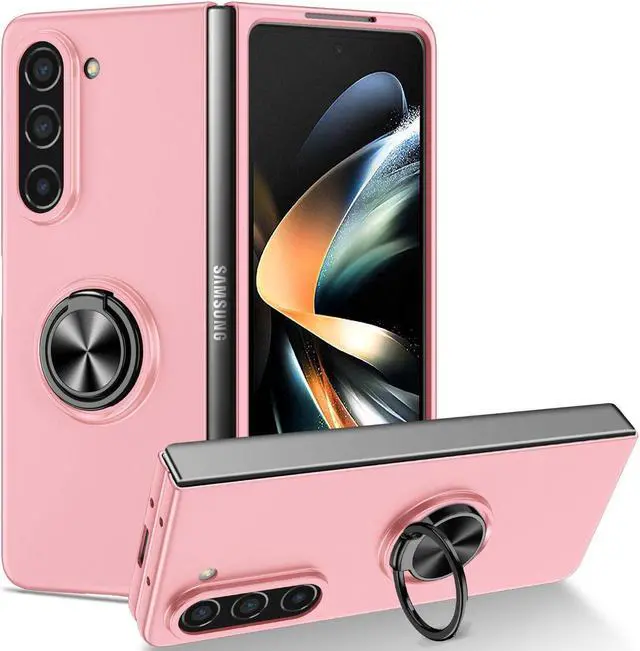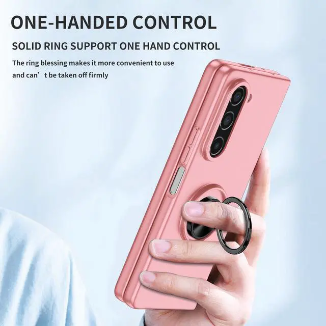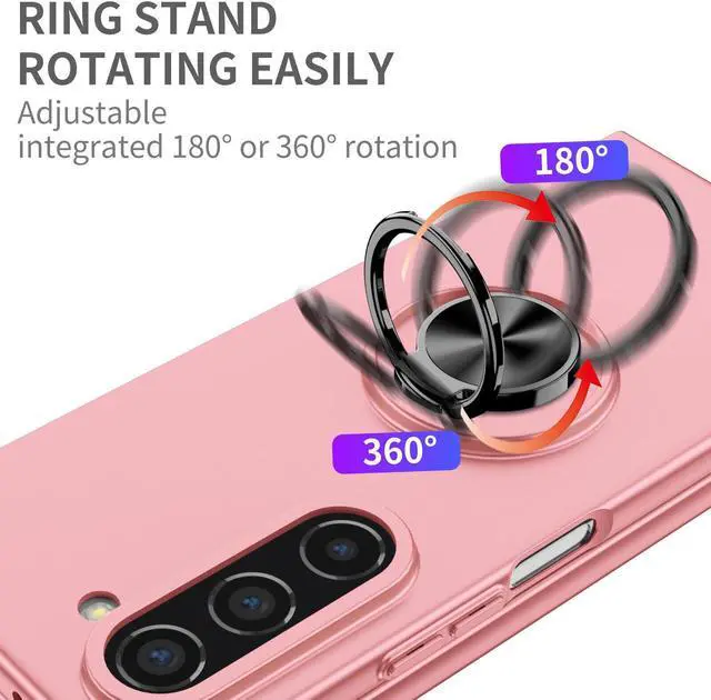 Features: Compatible with Samsung Galaxy Z Fold 5. The cover protects without being a bulky addition to your phone. It is designed with a slim form factor, keeping the sleek design of your phone intact. The cover material is durable even against scratches so it stays safe in your pocket or purse with ease. Protect your phone's corners and exterior to keep it safe from damage. Add protection while maintaining Galaxy Z Flip5's shape and the pocketable compact size. The thin material wraps around your phone and while enhancing the grip so your hands stay comfortable. The back of the case has a built-in extremely practical handle, Ring, which can be put on the finger to hold the phone more securely in your hand. It also allows you to attach the phone to a magnetic car holder. Pull the ring out and have a handy viewing stand to comfortably watch your favorite show. Raised beveled edge offers front screen protection. The simple and easy installation allows the cover to be attached in no time. simply clip onto the top half and bottom half of the phone individually and away you go.