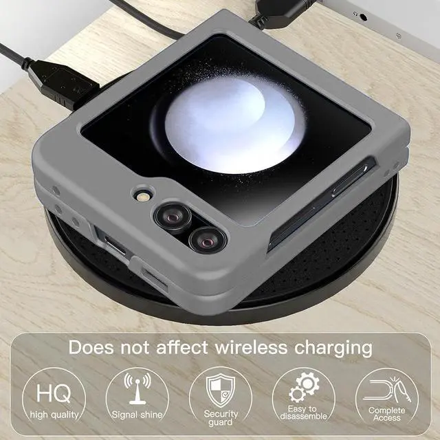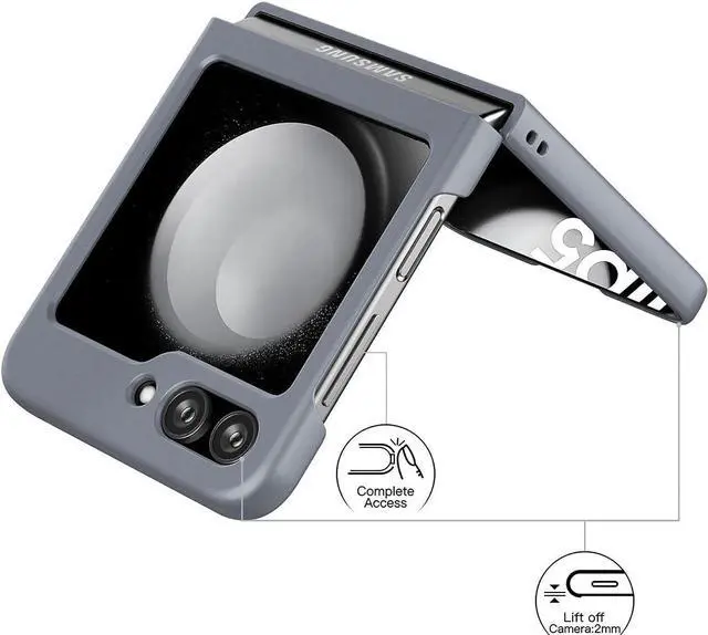 Features: Compatible with Samsung Galaxy Z Flip 5. The cover protects without being a bulky addition to your phone. It is designed with a slim form factor, keeping the sleek design of your phone intact. The cover material is durable even against scratches so it stays safe in your pocket or purse with ease. Protect your phone's corners and exterior to keep it safe from damage. Add protection while maintaining Galaxy Z Flip5 5G's shape and the pocketable compact size. The thin material wraps around your phone and while enhancing the grip so your hands stay comfortable. Raised beveled edge offers front screen protection. The simple and easy installation allows the cover to be attached in no time. simply clip onto the top half and bottom half of the phone individually and away you go. Features cut-outs for the ports and features including the charging connector and camera. Supports wireless charging with most Qi-certified devices.
