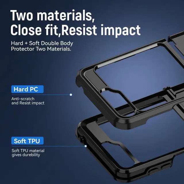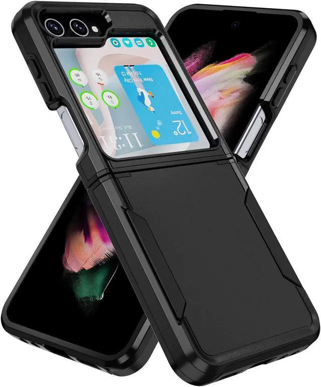 For unbeatable protection, the dual layer TUFF Hybrid Cover provides supreme defense against drops and abrasions. A soft rubberized TPU interior complete encases the Samsung Galaxy Z Flip 5 for shock adsorption on all sides while hardened polycarbonate shell attach to the back for a sleek look.