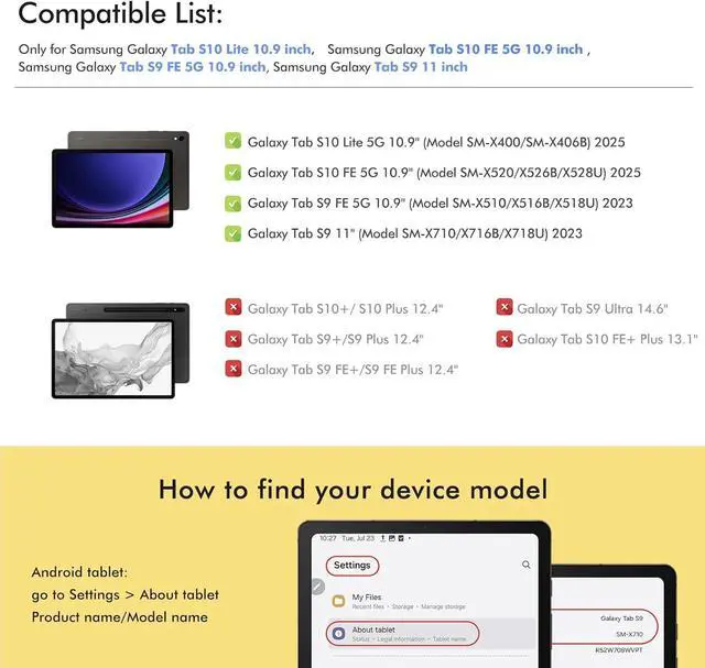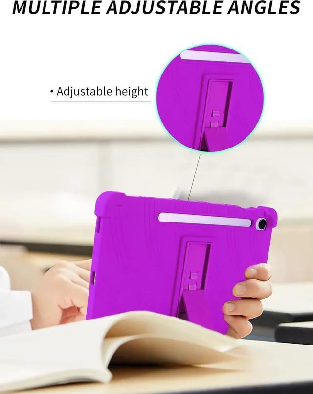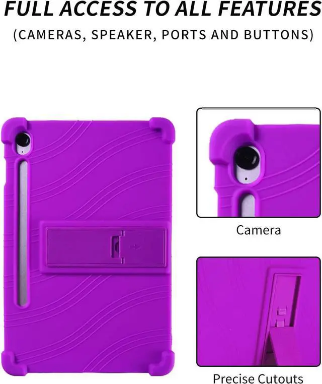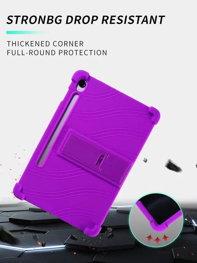 Protect your Samsung Galaxy Tab S10 Lite/ S10 FE/ S9 FE 5G 10.9 Inch/Tab S9 11 Inch Tablet. The durable silicone construction features reinforced corners and raised edges to guard against drops, bumps, and scratches. A convenient built-in kickstand allows for hands-free viewing in both landscape and portrait orientations. The case's textured wave pattern provides enhanced grip while the precise cutouts ensure full access to all ports, buttons, cameras, and speakers. The flexible material makes installation and removal quick and easy, while still maintaining a secure fit. Perfect for daily use, this protective case combines functionality with reliable device protection.