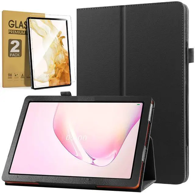 Case for Samsung Galaxy Tab S10 Lite/ Tab S10 FE/ Tab S9 FE 5G 10.9 Inch/ Tab S9 11 Inch with Tempered Glass Screen Protector - PU Leather Folding Stand Protective Cover with Auto Sleep/Wake (Black)