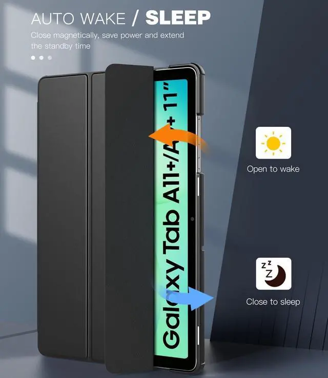 Auto Wake/Sleep: Magnetic closure, automatically wakes or puts your new Tab A11 Plus / A9 Plus to sleep when the lid is opened and closed.