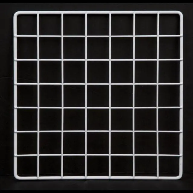 Epoxy coated square grid-style mini panels combined to form stackable cubbies in any configuration. Multi-use design allows retailers to stock hard or soft lines.
