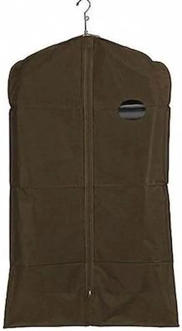 Attractive and sturdy re-usable garment cover can be customer printed in a variety of colors in a 6" x 6" area below the oval window. Printed logo acts as an advertisement or promotion. Keeps clothing wrinkle free and has reinforced hanger opening with center zipper.