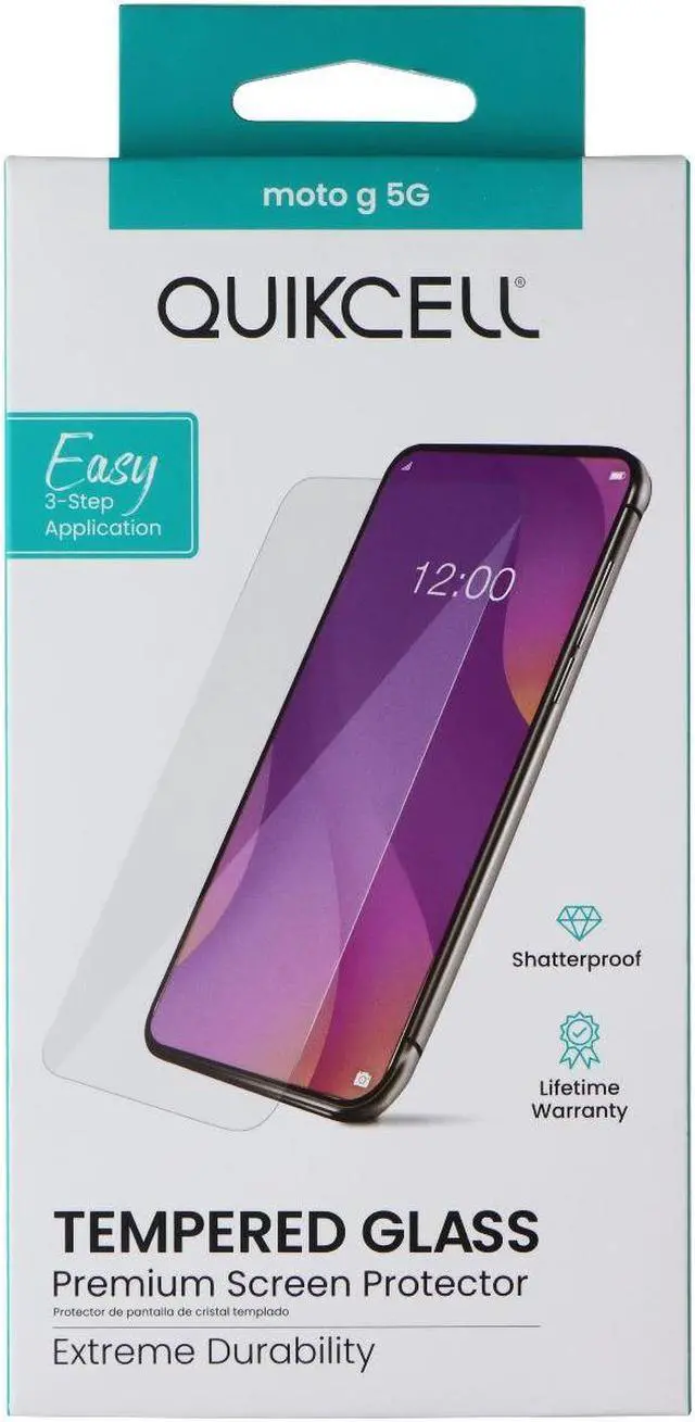 The Quikcell Tempered Glass Screen Protector for Motorola Moto G 5G Smartphones.