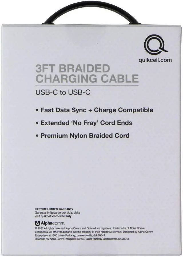 The Quikcell 3Ft Braided USB-C to USB-C Cable. BlackKEY_TAB Unit Color.