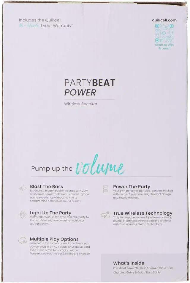 Quikcell Party Beat Power Series Wireless Speaker with LED Lights. Black speaker color.