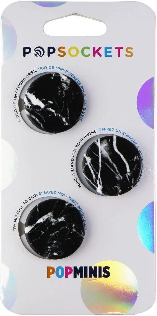 The PopSockets PopMinis Mini Grips for Phones & Tablets (3 Pack). Black Marble version.