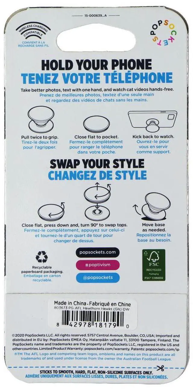 The PopSockets PopGrip Expanding Stand and Grip with Swappable Top. AFL Hawthorn Hawks version.
