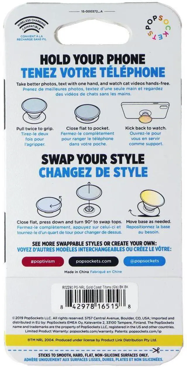 The PopSockets PopGrip Expanding Stand and Grip with Swappable Top. NRL Gold Coast Titans version.