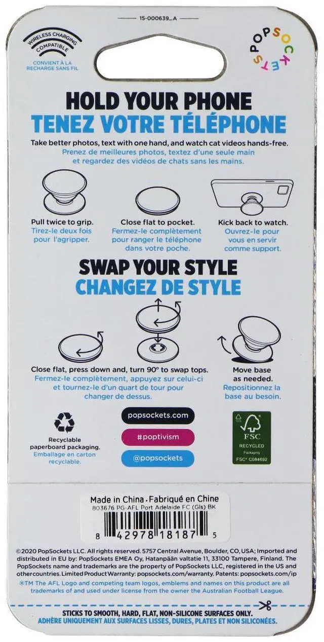 The PopSockets PopGrip Expanding Stand and Grip with Swappable Top. AFL Port Adelaide FC version.
