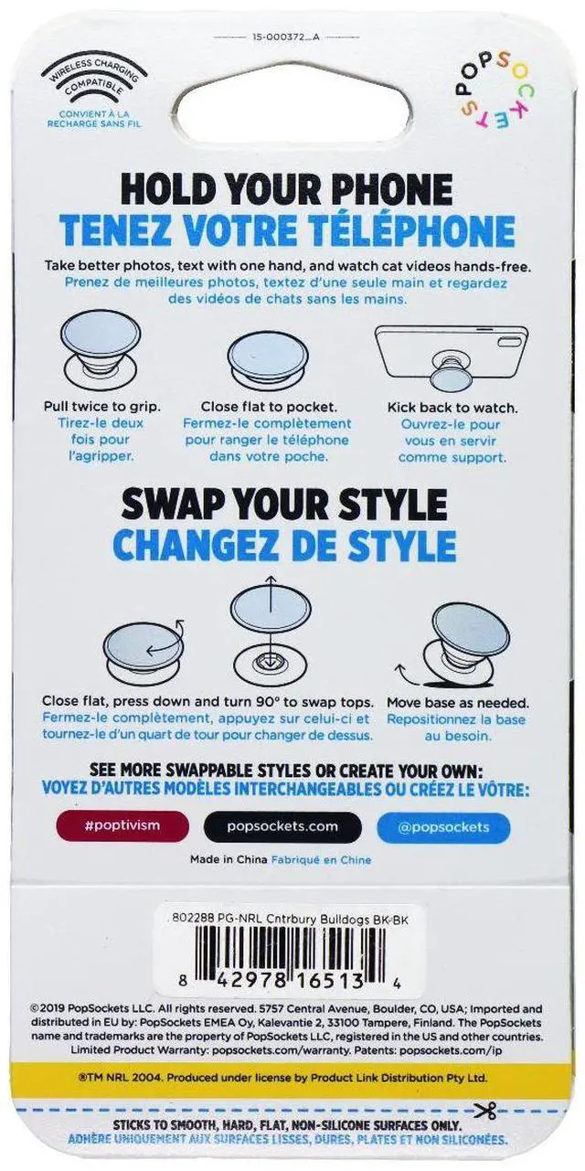 PopSockets PopGrip Expanding Stand Grip w/ Swappable Top. NRL Canterbury Bulldogs version.