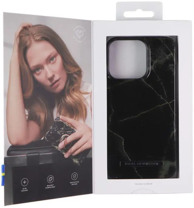 The iDeal of Sweden Fashion Case for Apple iPhone 13 Pro Smartphones. Black Thunder Marble Version.