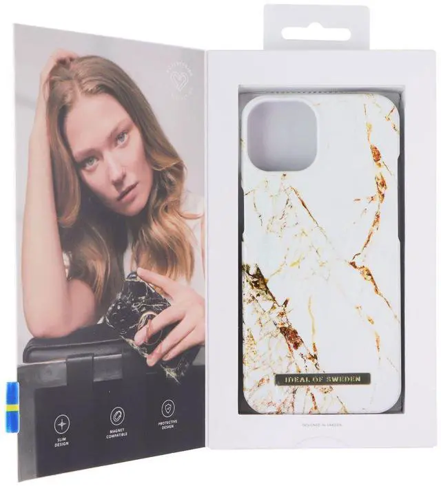 The iDeal Of Sweden Fashion Case for Apple iPhone 13 Smartphones. Carrara Gold Version.