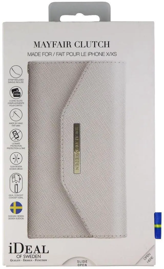 The iDeal of Sweden Mayfair Clutch Wallet Case for Apple iPhone X / Xs Smartphones. Model: (C-IDMC-IXS-128). All white exterior version.