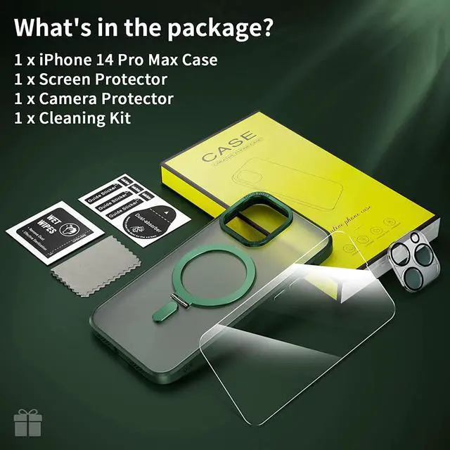 [What's Incloud In The Package] 1*iphone 14 Pro case that fits your iphone 14 Pro perfectly;1*screen protector;1*camera lens protector;1*cleaning set.