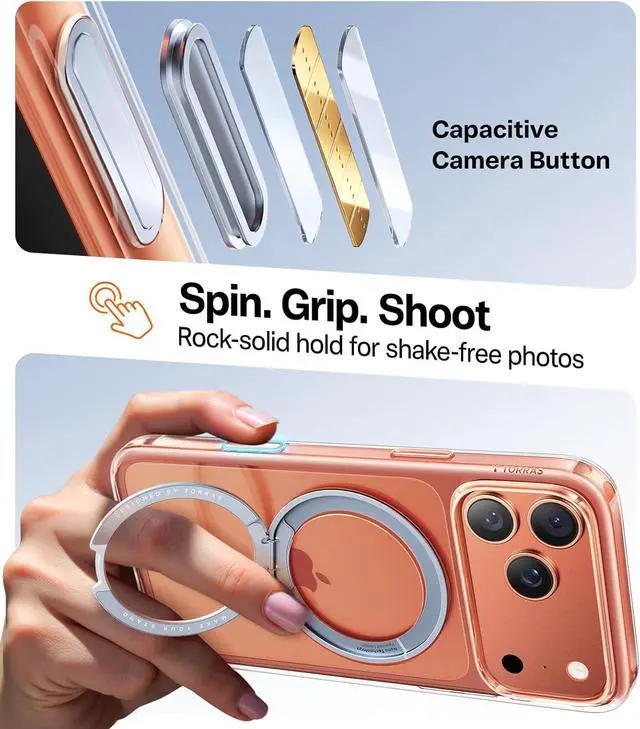 Years Countless Upgrades: Compatibility and Durability Redefined. As the inventor of the 360 rotating stand specifically for iPhone 17 Pro Max case TORRAS iterates its products based on user feedback. The 2025 upgrade enhances wireless charging compatibilityfeaturing smoother magnetic pairing and faster charging. The flush embedded stand (no bulges! ) has passed 30 000 open-close tests resisting breakage even with heavy daily use. Swing It. See It.