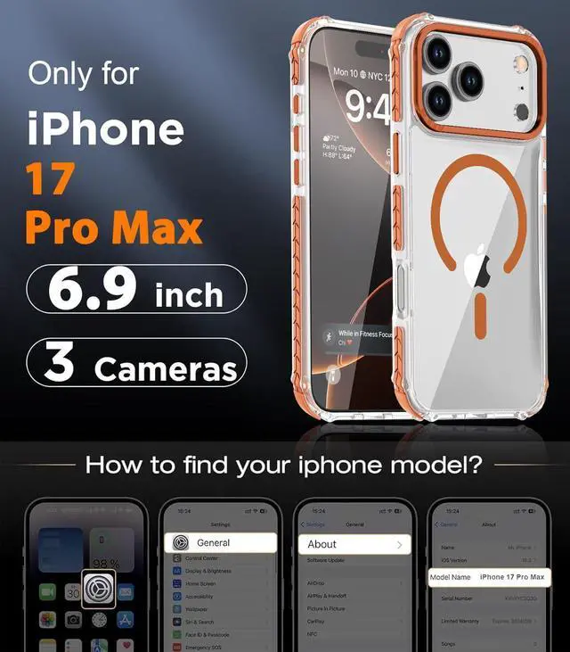 Wireless Charging: The magnetic Case specially designed for iPhone 17 Pro Max 6.9 -Inch 2025 Release. Built-in precisely aligned magnets provide safe the wireless charging experience.