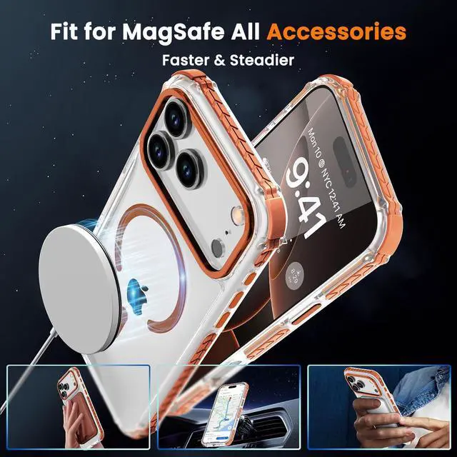 Strong Magnetic Case for iPhone 17 Pro Max 6.9-Inch [Compatible with Magsafe] Clear Slim Shockproof Protective Phone Cover for Women Men-Transparent+Orange