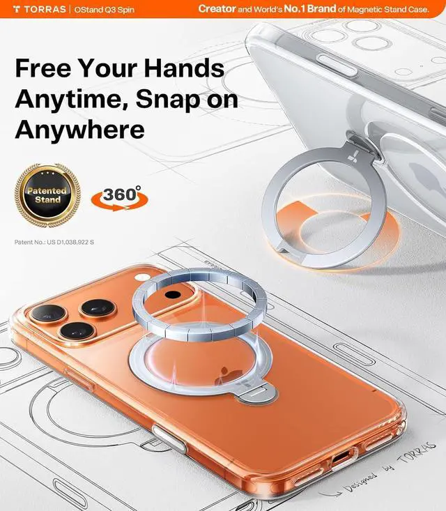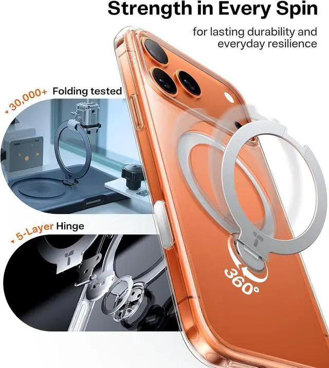 [3-in-1 360° Spin Stand | Work Play Create] Stand grip and wireless chargingall at once! The phone case for iPhone 17 Pro Max with stand provides a wider and more flexible adjustment angle reducing screen glare in landscape or setting it upright to act as a mini tripod with a unique 90° vertical position. Fit for iPhone 17 Pro Max case with stand the O-ring also functions as a secure grip giving you steady hands to prevent drops. When closed it lies flush for pocket-friendly carry and effortless wireless charging[18N Magnetic Lock | Stronger Safer Connection] This case for i Phone 17 Pro Max with magnetic align perfectly with your phone for a seamless attach experience and safe wireless charging.