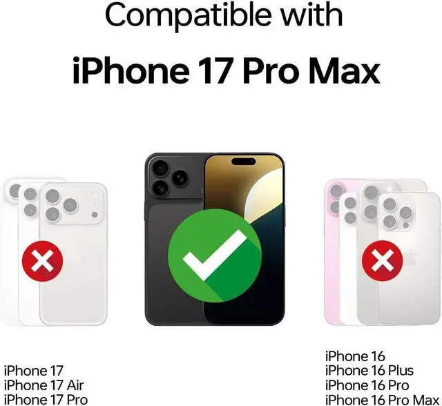 Compatibility- This clear phone case is specifically designed for iPhone 17 Pro Max 6.9 with precise cutouts for easy access to all buttons ports and speakers. Check your phone model as steps: Settings-General-About-Model Name. Silicone Camera Control Guard Waterproof & oil-resistant silicone protects the camera button from damage aging and scratches while maintaining ultra-sensitive click response. MagSafe Compatibility the magnetic case compatible with all MagSafe accessories. Strong magnetic alignment for seamless wireless charging and accessories with built-in 26pcs N52 strong magnets circle. Dual-Layer Protection Made of Frosted matte hard PC back + flexible soft TPU bumper with 4-corner air cushion technology for ultimate drop protection Anti-yellow and Anti-fingerprint Non-slip with super grip. Lightweight and Slim- Maintains a sleek profile for easy handling and pocket friendly without adding bulk. Looks really nice and super easy to install & remove! Keeps your phone in the original beauty.