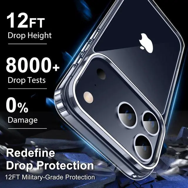 12FT Military Grade Drop ProtectionWith 4 corners rudded impact-absorbing bumper and upgraded shock-resistant technology the shockproof case is SGS certified to give your phone an all-round protection keeping your phone safe from 15FT drops on hard cements. Comfort Grip & Anti-fingerprintThe crastal clear case for iPhone 17 pro max adding exclusive AF Anti-fingerprint coating effectively prevents fingerprints watermarks oil and dust to enjoy long-term cleanliness Meanwhile the MOZOTER case for iPhone 17 pro max also adopts unique ergonomic design to make the independent buttons feel sensitive and easy to press brings you excellent skinny touch.