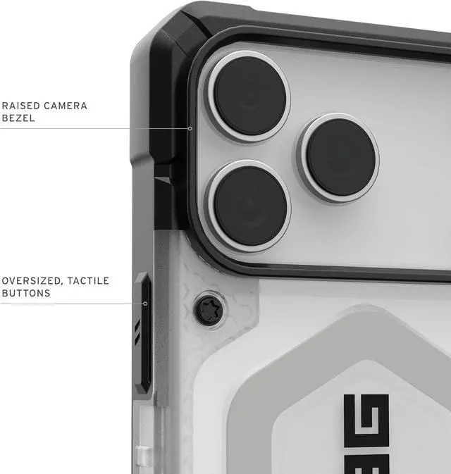 Rugged Translucent Durability: Elevated co-molded design feather-light composite construction (translucent PC) with our patented hard outer armor shell an impact-resistant soft core and torsion screw detail. Hex pattern core for increased shock absorption. Made with 25% recycled materials combining sustainability with high-performance protection.