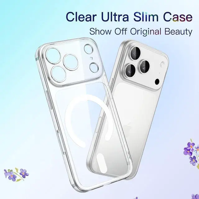 NOTE: Not for iPhone 17 / Air / 17 Pro. Maintains the original feel of using your bare phone[Strong Magnetic Adsorption] The perfectly aligned magnets make wireless charging faster and easier than ever before. Compatible with MagSafe accessories. When it's time to charge just keep the case on your phone and snap on your charger[Lightweight & Portable] Crafted from premium TPU and PC materials. Lightweight and not bulky at all. The streamlined edges create a fashionable profile while allowing the device to slide effortlessly into pockets for elegant portability[Clear Back] Ultra transparent and scratch-resistant back is easy to show the beautiful design and logo of your phone[Camera Lens Full Protection] Precise cutouts for the speaker buttons and especially the camera lenses. And you can access your phone's all features and controls easily