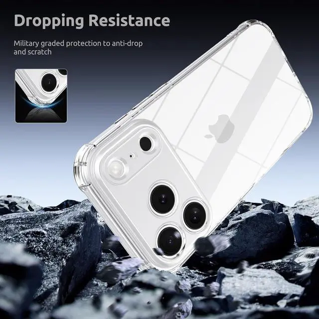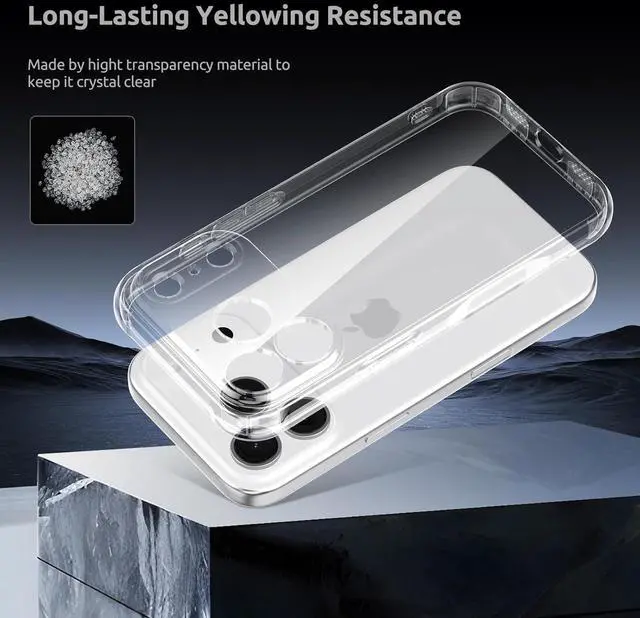 Yellowing: The iPhone 17 Pro Max clear case is meticulously crafted from premium TPU material. incorporatesanti-oxidation technology to maintain clarity preventingyellowing over time and showcasing your iPhone's originalcolorCamera &