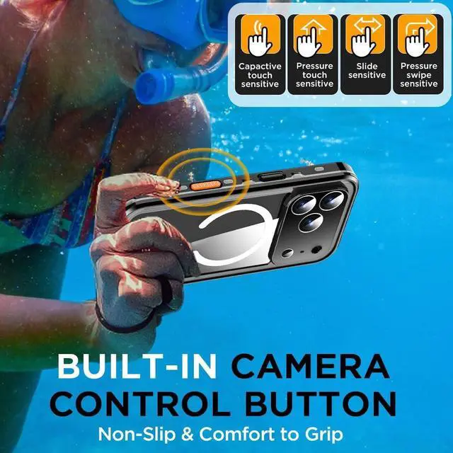 MagSafe chargers Compatibility AICase Waterproof SERIES Case special designed for iphone 17 Pro Max 2025. Compatible with MagSafe chargers and accessories. Moreover this case is seamlessly compatible with variety of MagSafe accessories including power banks car mounts magnetic wallets and more providing superior wireless charging compatibility and user convenience than before. IP68 Certified WaterproofUnderwater full sealed IP68 Certified For iphone 17 Pro Max waterproof case designed and tested to submersible to 6.6 -10ft/2-3m for 30 minutes and it Can take pictures underwater. Its comprehensive body protection design enables underwater photography and videography. 360 Full Body ProtectionAICase shockproof iphone 17 Pro Max Case is certified to exceed Military Grade Drop Test standards and survive drops up to 6 feet ( 3.6 m).