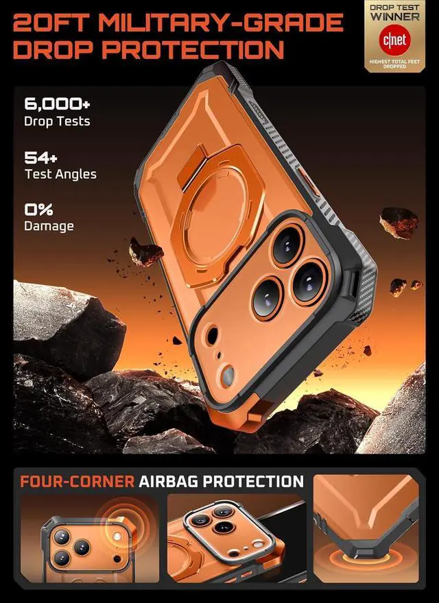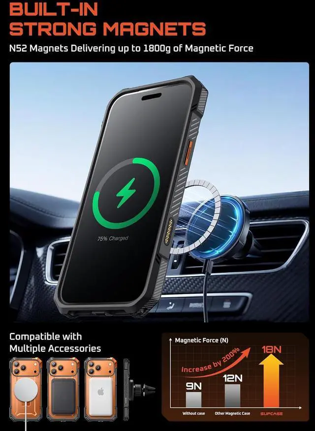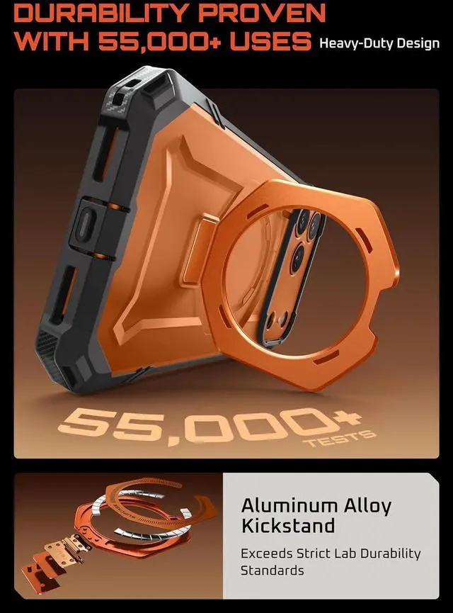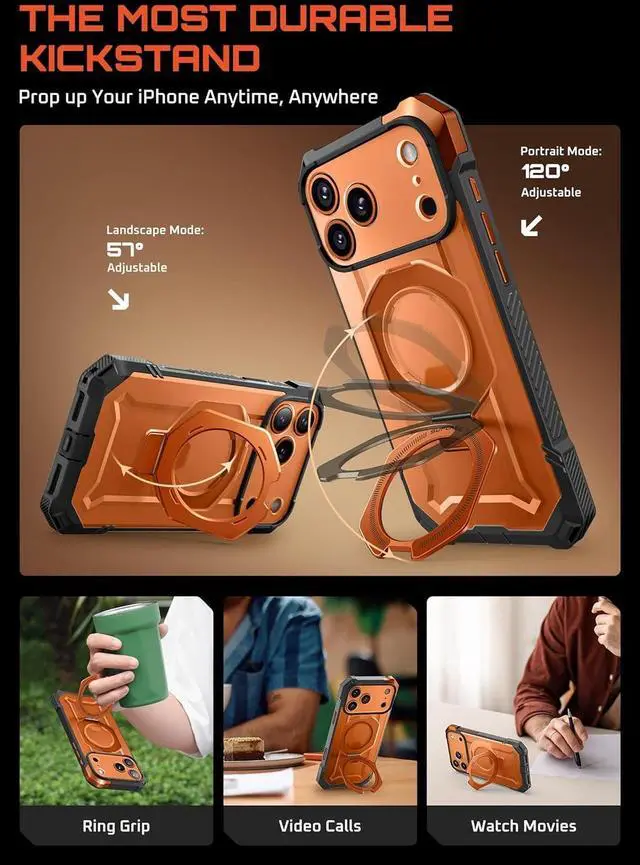 [Kickstand & MagSafe Features]: Built-in aluminum alloy kickstand provides multiple viewing angles. N52 strong magnet with up to 1800g magnetic force ensures seamless compatibility with MagSafe accessories.